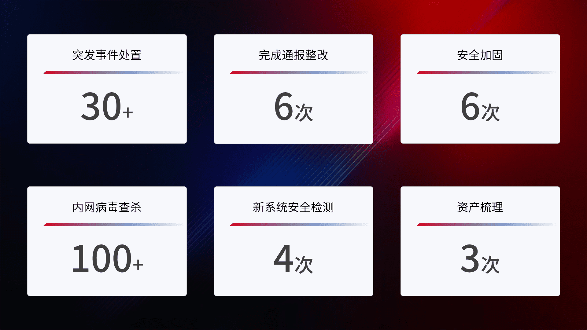 安全水平提升与事件响应:派驻经验丰富的安全工程师,,,,提升医院网络安全防护的整体水平;建立突发网络安全事件的处置流程,,,提高响应速度和处置能力。。
